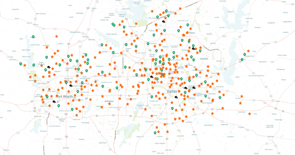 Collin, Dallas, Denton, Ellis, Hood, Hunt, Johnson, Kaufman, Parker, Rockwall, Somervell, Tarrant and Wise.