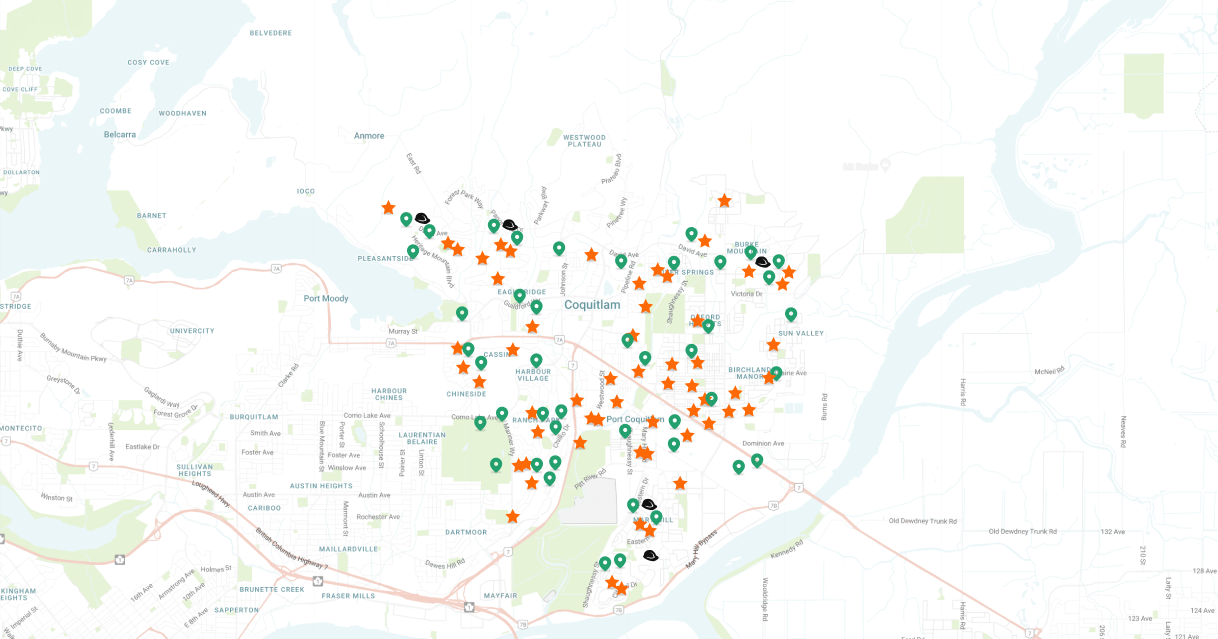 Port Moody, Coquitlam, and Port Coquitlam.
