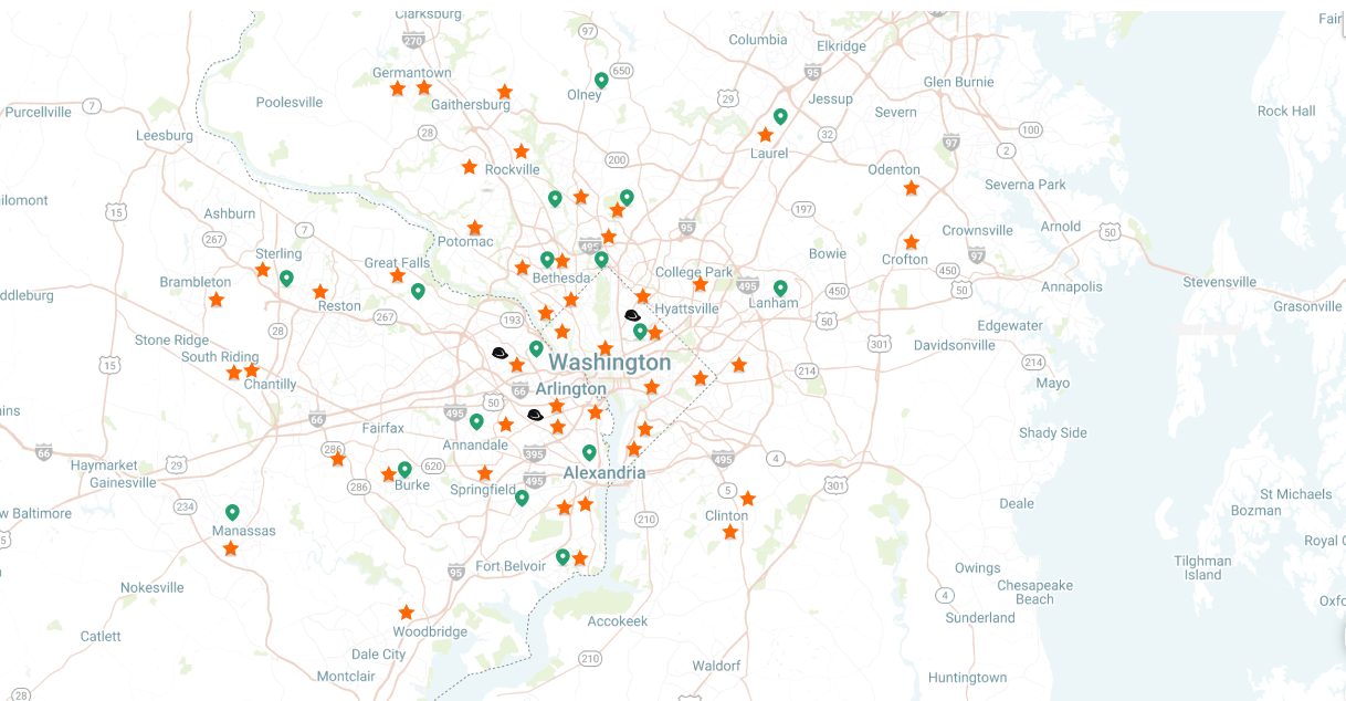 Alexandria, Annandale, Arlington, Bailey’s Crossroads, Burke, Centreville, Chantilly, Clifton, Dale City, Dumfries, Fairfax, Fairfax Station, Falls Church, Fort Hunt, Franconia, Great Falls, Herndon, Lake Ridge, Leesburg, Lorton, Manassas, McLean, Merrifield, Mount Vernon, Oakton, Occoquan, Reston, Springfield, Sterling, Tysons, Vienna, Washington, Woodbridge.